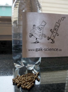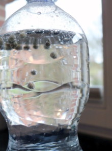 Nimm dir zuerst eine noch geschlossene Flasche mit Mineralwasser und fülle ein paar ganze Pfefferkörner hinein. Jetzt schließe die Flasche wieder und beobachte genau was passiert.