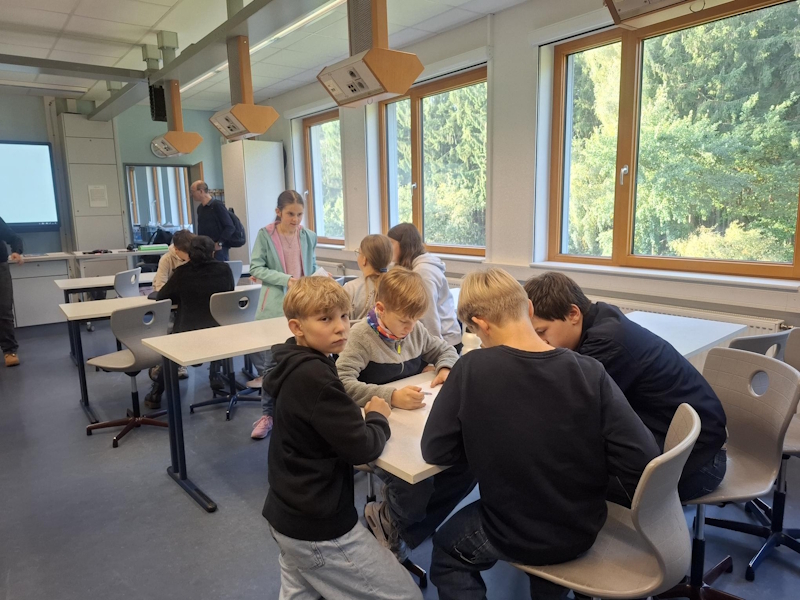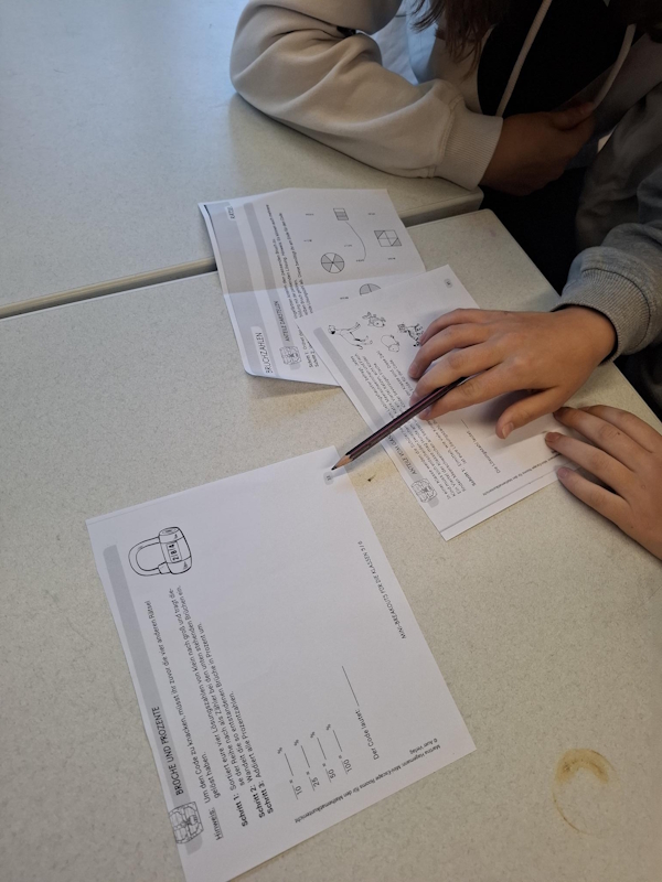 Heute wurde in unserer MINT-Pause der Code einer Schatztruhe gefunden. Dazu mussten fünf Aufgaben im Raum gesucht werden, die sich zum Auswählen mit Symmetrie oder Brüchen beschäftigten. Die Schülerinnen und Schüler konnten den Code in der Pause knacken und die Schatztruhe öffnen! Glückwunsch!