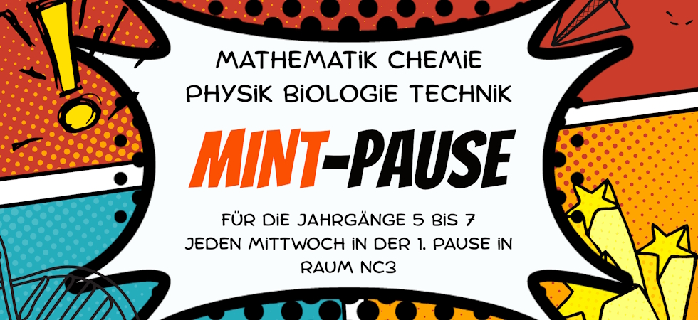 Unsere MINT-Pause bietet ab diesem Schuljahr wöchentlich eine MINT-thematisierte Pausenaktivität und im Dezember sogar tägliche MINT-Pausenangebote! In den Dezemberwochen haben sich die Schülerinnen und Schüler intensiv mit den Wettbewerben „Mathe im Advent“ und „Physik im Advent“ während der MINT-Pausen beschäftigt. In den Wochen davor gab es wöchentlich ein kleines Highlight-Experiment zum Staunen oder Mitmachen während der MINT-Pause. Betreut wurden die vielen MINT-Pausen von Nl, Hg, Df, Mo, Oh, Bs, Sr, Hh, Ky, Hgm, Wk, Rk und Gd 🙂